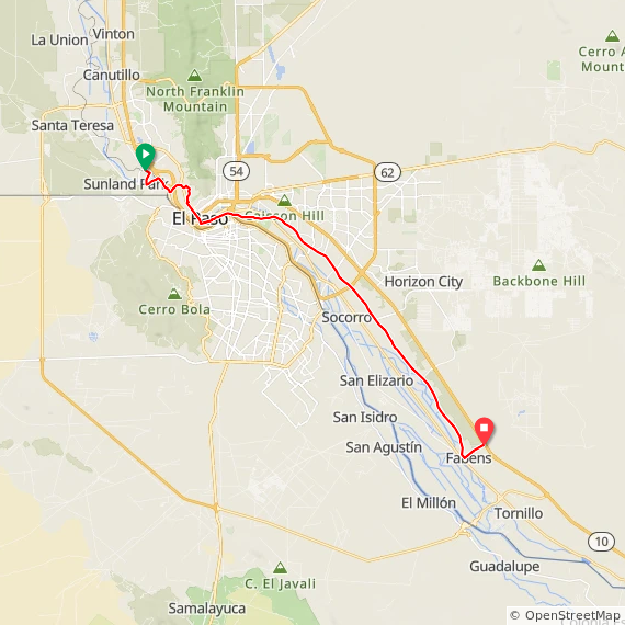Strong tailwinds propelled us to Fabens on a suburban highway. Dennis chose Fabens because it was the easternmost lodging in the El Paso area. It reduces tomorrow’s miles as much as possible but still leaves us with 99 miles to our next hotel.
