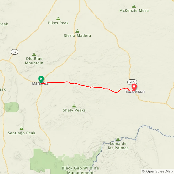 Concerns about tomorrow’s 119 mile ride in the face of projected 20+ mph headwinds gave rise to an idea from George that the group ride another 20 miles beyond Sanderson today, shuttle the bikes back to Sanderson and then shuttle to start tomorrow’s ride where we ended today. This would help the EFI (Every F** Inch) crowd. Not being so inclined and having an afternoon State Bar meeting to attend, I opted out of the extended ride.